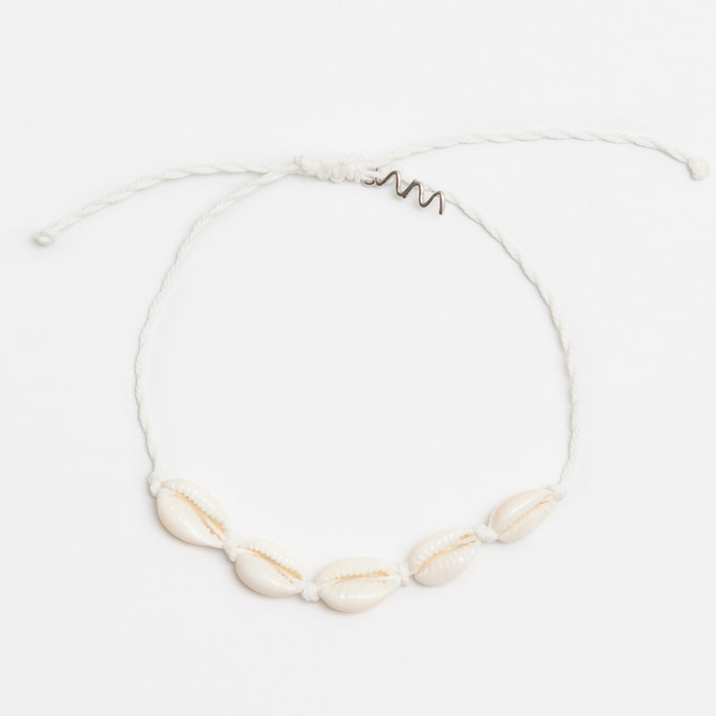 La tobillera CONCHITAS es de color blanca con una cadena de conchitas naturales anudadas.